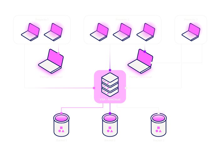 Almacenamiento en red conectado a tus instancias en modalidad pago por uso. Gestiona los shares de manera centralizada permitiendo compartir storage entre las instancias de tu proyecto.