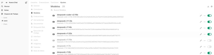 - Open WebUI: Interfaz gráfica unificada para gestión de modelos y chats