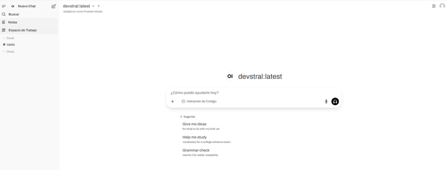 - En el menú superior izquierdo, aparecen todos los modelos descargados y disponibles en Ollama. Puedes seleccionar el modelo con el que deseas interactuar, cambiarlo en cualquier momento y probar diferentes opciones según tus necesidades.