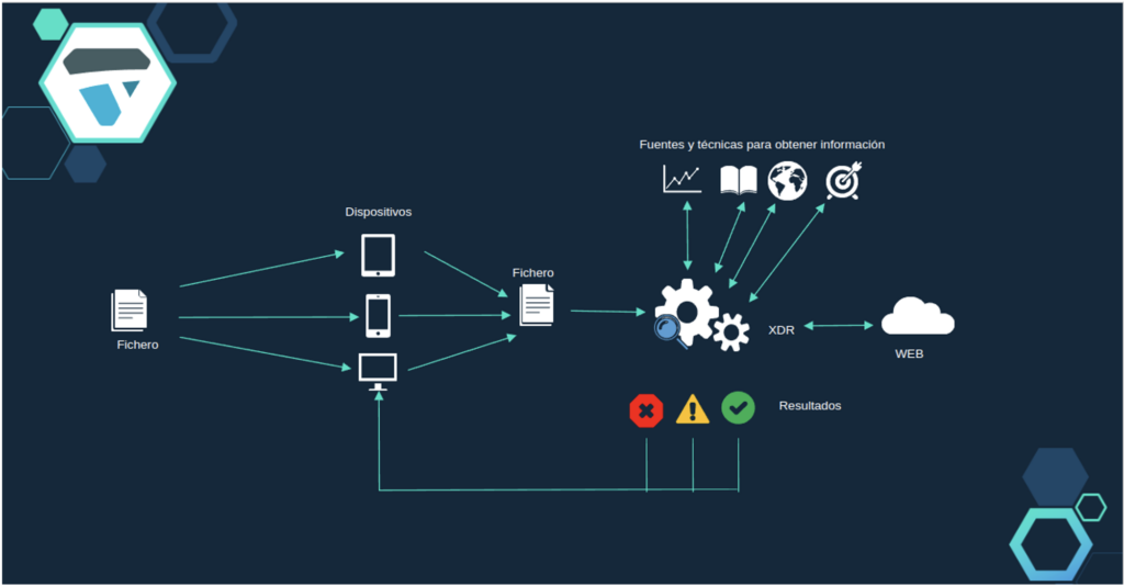 - Inteligencia de los datos: un XDR integra la capacidad de obtener de fuentes externas (específicas en algún campo de la seguridad, como por ejemplo una lista pública de webs maliciosas) para mejorar la detección y dar una mejor información.